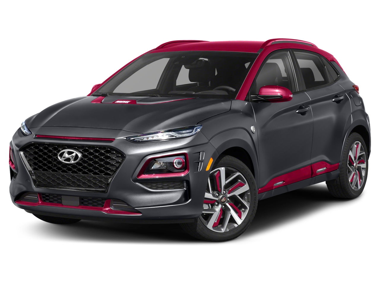 Kona Iron Man, 4D Sport Utility, 1.6L I4 DGI, 7-Speed Automatic, FWD, Matte Gray w/Iron Man Red Roof, Red Leather, Adaptive Cruise Control, Apple Car Play Android Auto, Backup Camera, Blind Spot Monitoring, Bluetooth®, Heated Seats, Leather Seats, Navigation System.